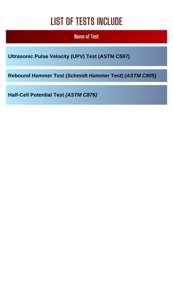 Non-Destructive Testing (NDT) services in a civil laboratory involve advanced inspection techniques that assess the integrity, strength, and durability of construction materials and structures without causing damage. These tests ensure safety, compliance, and longevity in buildings, bridges, roads, and other infrastructure projects.